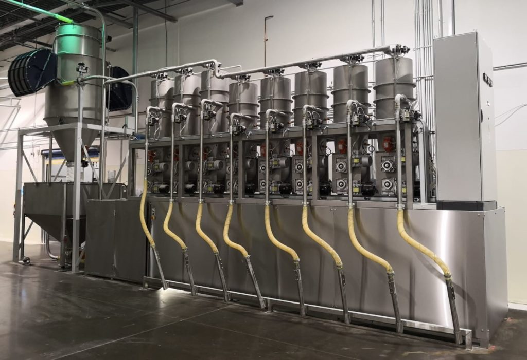 Intech.用于面包成分的微型批量系统允许高精度地自动管理少量产品。该装置配备有料斗,料斗安装在负载电池上方,用于给药的选定成分。