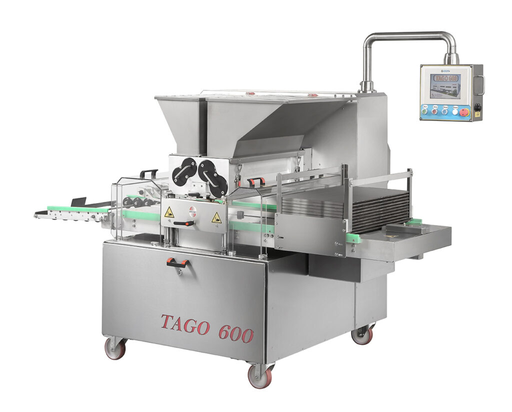 中指出Tago 600是一款自动面点沉积机,用于双色饼干和馅料,并配有自动托盘进料。易于清洗,灵活,配备功能解决方案,使操作和维护直观,减少停机时间。