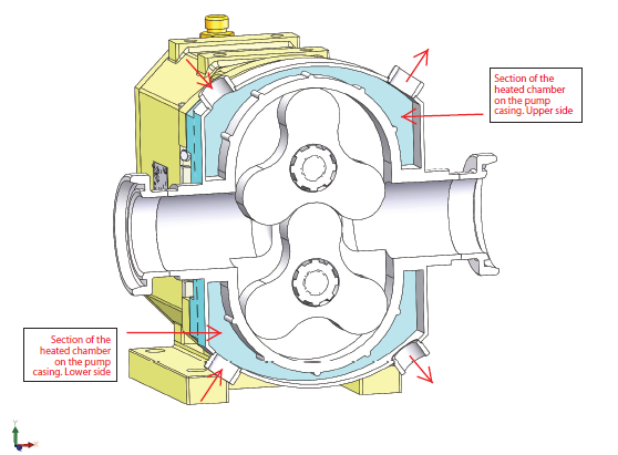 由于它的结果从图纸,液体完全包围泵的身体,直到开口。此外,壁厚的减小有利于热交换。由于这个附件的正常功能,转移的产品保持其特性,在机器停止时不会在泵内硬化。这防止了重新启动时的压力峰值,可能的癫痫或更严重的损害。