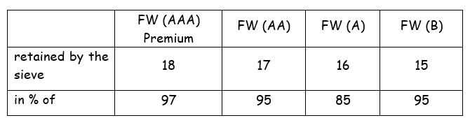 使布隆迪的生咖啡符合SCA标准的必要条件是由ARFIC(布隆迪咖啡厅管理局)建立的,ARFIC是布隆迪负责质量控制和向该部门经营者传递信息的机构。根据表中规定的限度,通过测试300克咖啡对洗净的生咖啡进行分类。2,其中值对应于每个屏幕中未显示缺陷的剩余bean的最小百分比。全洗咖啡占布隆迪咖啡出口的83%。