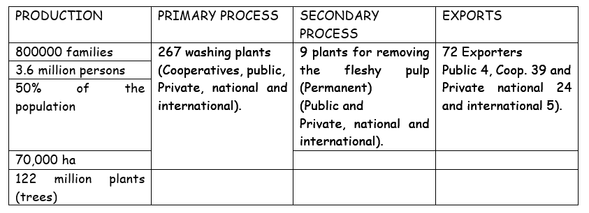 由于全球气候变化预测和与森林砍伐有关的问题,一些研究假设至少60%的阿拉比卡咖啡物种在2080年灭绝(4,5)。因此,有必要采取具体行动来解决经济可行性和气候变化问题。为了确保未来的供应,让小生产者过上体面的生活。