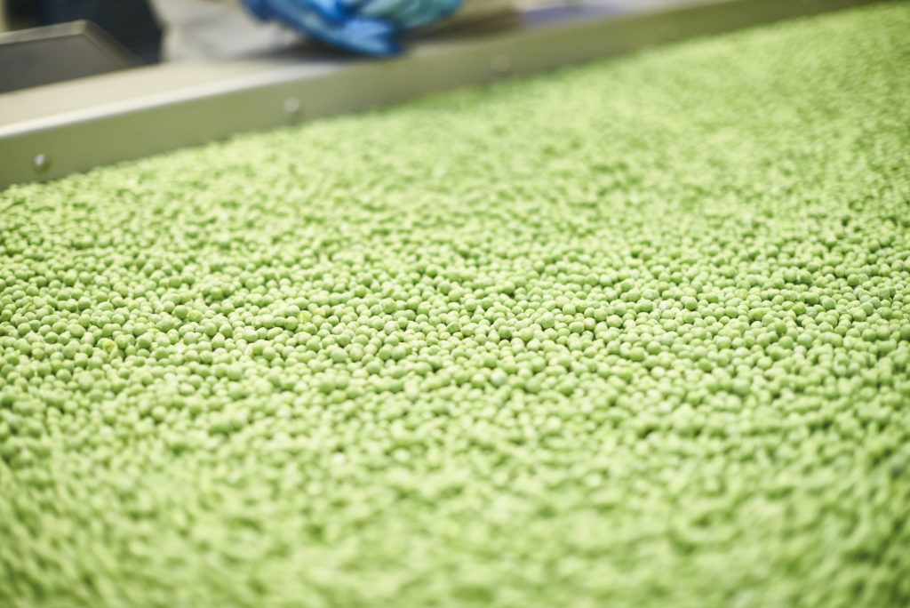 在每年的收获季节,约克郡格林工厂的豌豆都已经剥好壳了。在漂白之前,它们要经过一系列的清洗和清洁过程,然后再经过单独的快速冷冻(IQF)过程,以迅速将核心温度降至-20°C。