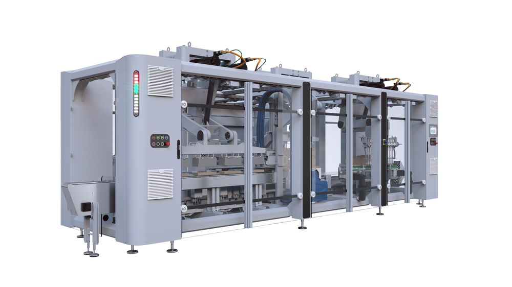 Cama展示了作为全系列突破性世代(BTG)系统标准的最新技术创新,标志着研发的一个里程碑:更高的卫生标准,开放的外形,安全的“容易进入”和人体工程学,灵活的框架和减少占地面积,节能工程,傻瓜尺寸部件识别。IF318全自动化整体式装载机是一个“无螺距”集成平台,用于将食品和非食品产品成型/装载/关闭成纸板或瓦楞纸箱或箱子。在给定的产品输入能力下,可以自由地改变3个机器人工作站处理的盒子的数量和音调,多亏了独立的电子搬运工,每一个都与其他的分离。此外,可变箱处理装置允许沿轨道自动转换所有所需的纸箱/箱尺寸,尽管它们的形状和尺寸,因此尺寸更改无效。IG Complete Robotic Line将flowpacks以多种风格和多层不同的形式进行包装:经Cama的客户(该公司是该领域的全球跨国领导者)同意,该系统由两个机器人单元组成。