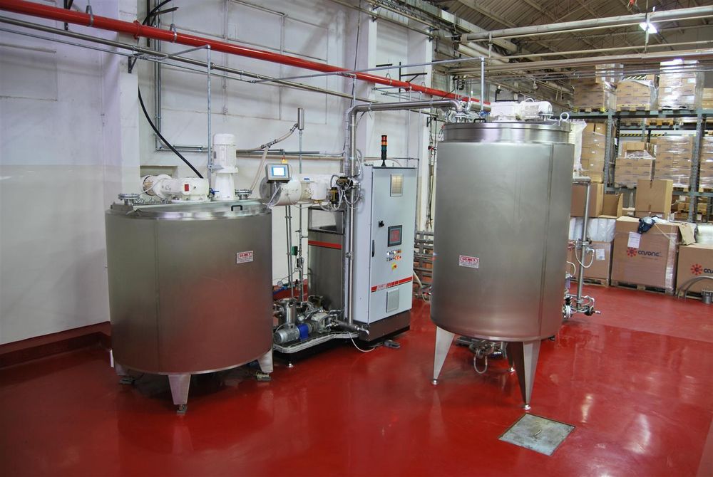 彗星根据每个客户的生产需求,为食品工业(巧克力,油脂,糖果和糖果,冰淇淋,果汁,奶制品)设计和建造广泛的机器和工厂。生产范围包括:常压储罐,带压力或真空,配备多种可选装置(称重单元、搅拌器、换热单元);脂肪面包的溶解剂;粉状、液体和乳状产品的搅拌器;热交换器;常压或真空蒸汽糖果锅;氮的生产单位;输送和添加液体和奶油产品的管道。该公司的展示品是两个用于填充和覆盖的奶油和榛子酱的精炼工厂;面霜; ingredients and materials used in confectionery and ice-cream production. The machines are available in different versions (for 100, 250, 500 kg), with manual or automatic control managed by PLC with dedicated software. Next to the single machine, Comet can offer complete refining plants, from the storage of raw materials to the handling of the finished product prior to packaging, complete with automation and customized according to specific customer or product needs.