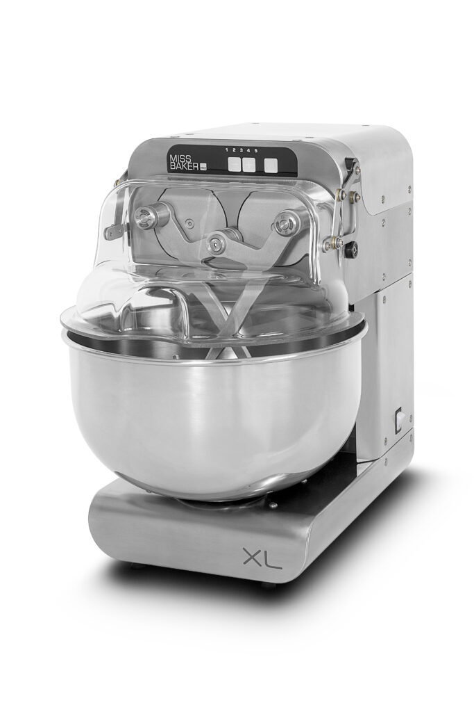 Bernardi.展示Baker Pro XL Inox,具有柱塞臂的顶层混合器,用于20升罐中的1.5至6千克的产品。由五速逆变器操作的手臂允许35至65次/分钟。