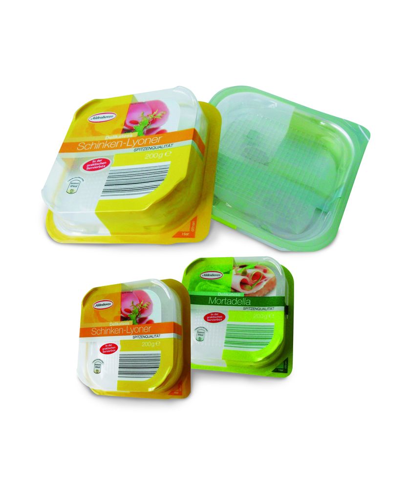 之一格罗萨旗舰产品与可重复密封的包装解决方案有关,以确保包装商品的完整性和新鲜度。在顶级型号中,有伺服盒,一种用于包装切片奶酪的解决方案。由Apet(无定形聚酯)和可剥离PE组成的多层层压材料用于热成型下膜,即托盘;由于顶部和底部的不同几何形状,它确保了托盘重置性。所有解决方案都旨在通过时间保护和保留食物,开口和关闭包装允许延迟消耗。在高屏障特性旁边,包装为图形演示提供两种可能性,一个内部和包装外部。大多数不同的解决方案可用于奶酪包装,具体取决于奶酪的种类和形状以及包装和保存技术:从磨碎的奶酪从热成型托盘上的奶酪,从传统的流量包装与易开口盖子相结合。结构可以是:OPA + PE,PP + PE屏障,PET + ALU + PE,PET屏障+ PE,PET + PE,OPP + PET + PE。