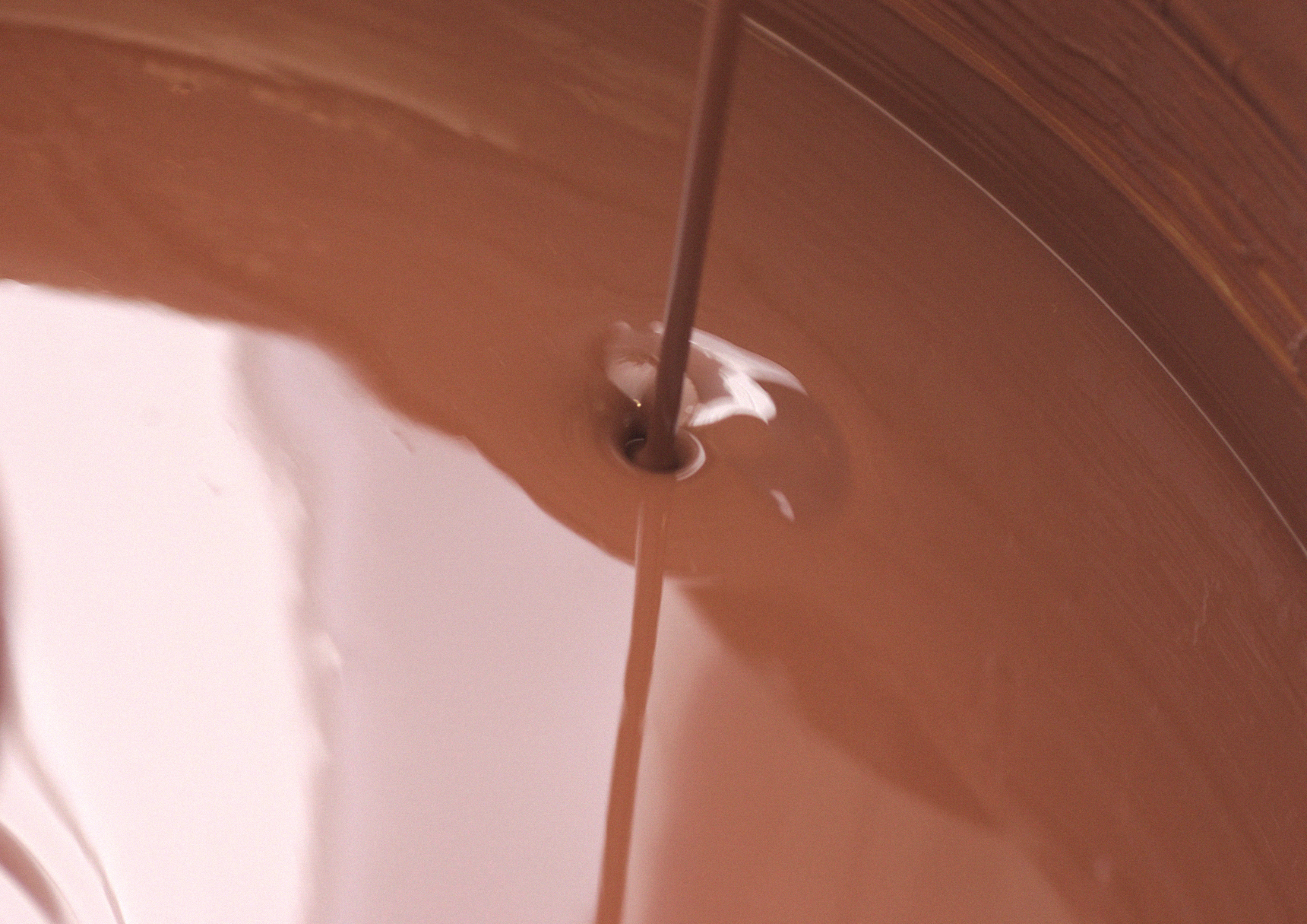 精炼。这一过程的目的在于获得质地正确的巧克力,而不是砂砾或胶状。由于这个原因,粒度测定应该在25微米左右,舌头失去了测定颗粒粒度的能力。但是,颗粒不应该太小,因为巧克力会变得粘糊糊的。这种缺陷可以通过在后期添加更多的可可脂来纠正。此外,良好的精炼工艺要求颗粒分布均匀,脂肪含量在25%到27%之间。