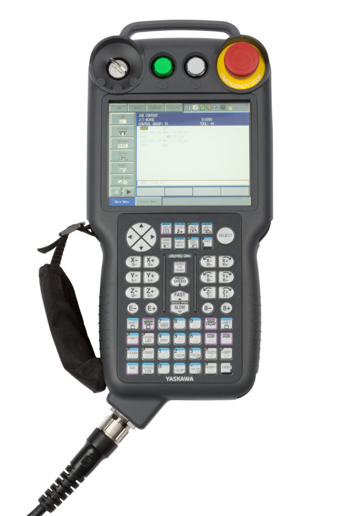 机器人由Compact YRC1000控制器控制,允许最佳使用空间,并旨在为机器人加速和速度设定新标准。照片显示了教导吊坠(重量730g),其中机器人位置在3D显示器上可见。根据该模型的情况,机器人可以转移各种产品,因为它们安装适用于有效载荷容量的夹持器,根据该模型。