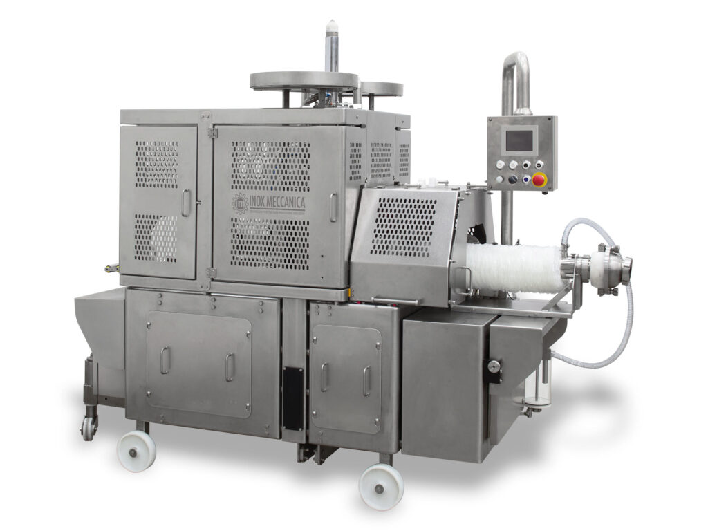 The clipping machine CLXP 260 fromInox Meccanicais designed to automatically fill synthetic or Nutrafilm casings and calibrated/elastic nets with products of different size.
