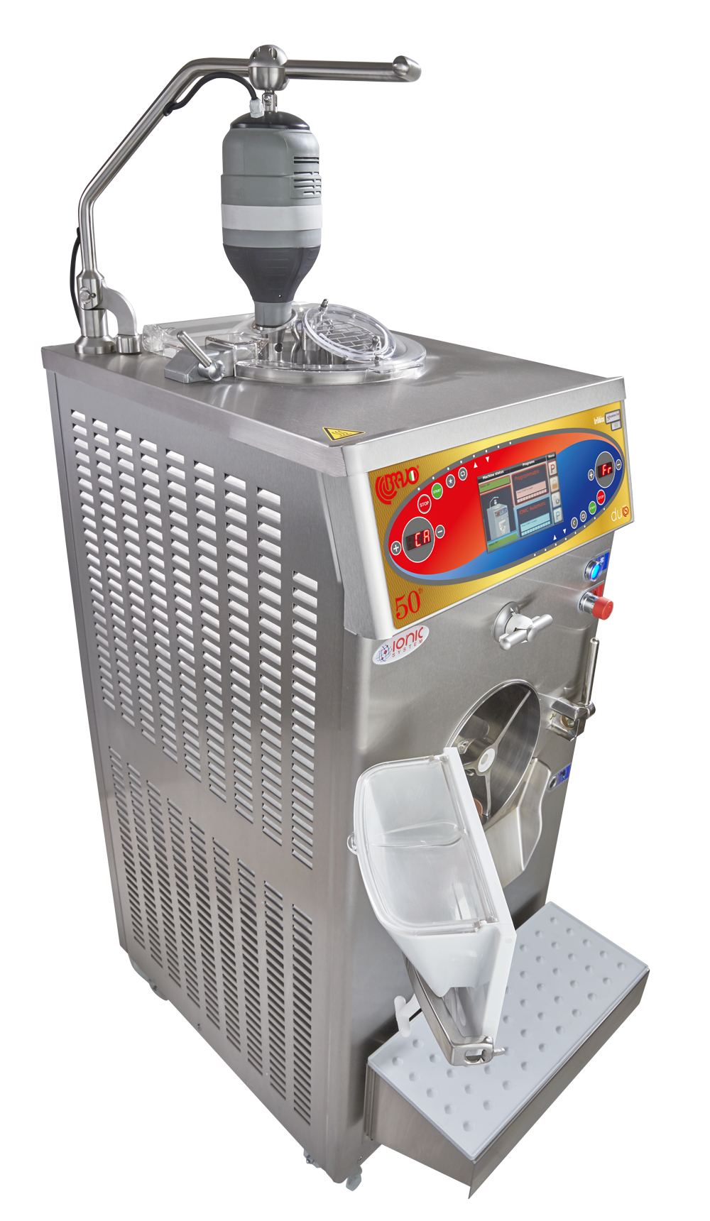 为了加热、烹饪、冷却或减弱,布拉沃创造了Trittico,一个只占用一平方米空间的多功能机器。它由两个水箱组成:一个是上部的垂直水箱,用来加热、烹饪和巴氏消毒,就像一个着火的锅;还有一个水平较低的水箱,可以分批冷冻和冷却。储罐通过内部专利管道进行分离和连接,防止从上到下储罐的过程中受到任何外部污染,从而确保产品的卫生。该系统完美地满足了奶油店,糖果和巧克力实验室和餐饮服务的需求。每一种工艺都有自己的特性,必须遵守时间和温度;这个多功能单元精确地满足了这些需求,这要感谢一个数字记忆与预设配方。几项专利保证符合允许的温度,烹饪和冷冻时间,或搅拌速度,没有任何错误的空间,感谢非常精确的探针。