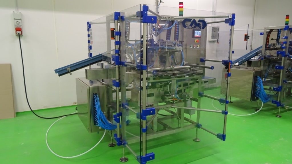 图片显示了ist.包装器,适合用塔比吉奥,Quartirolo和具有聚乙烯涂布纸的类似产品包装平方奶酪。加载和卸载是手动,但如果需要,可以自动化。